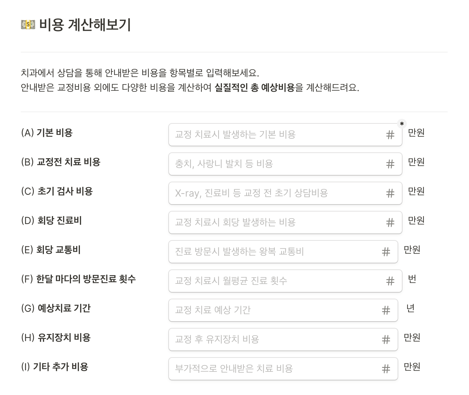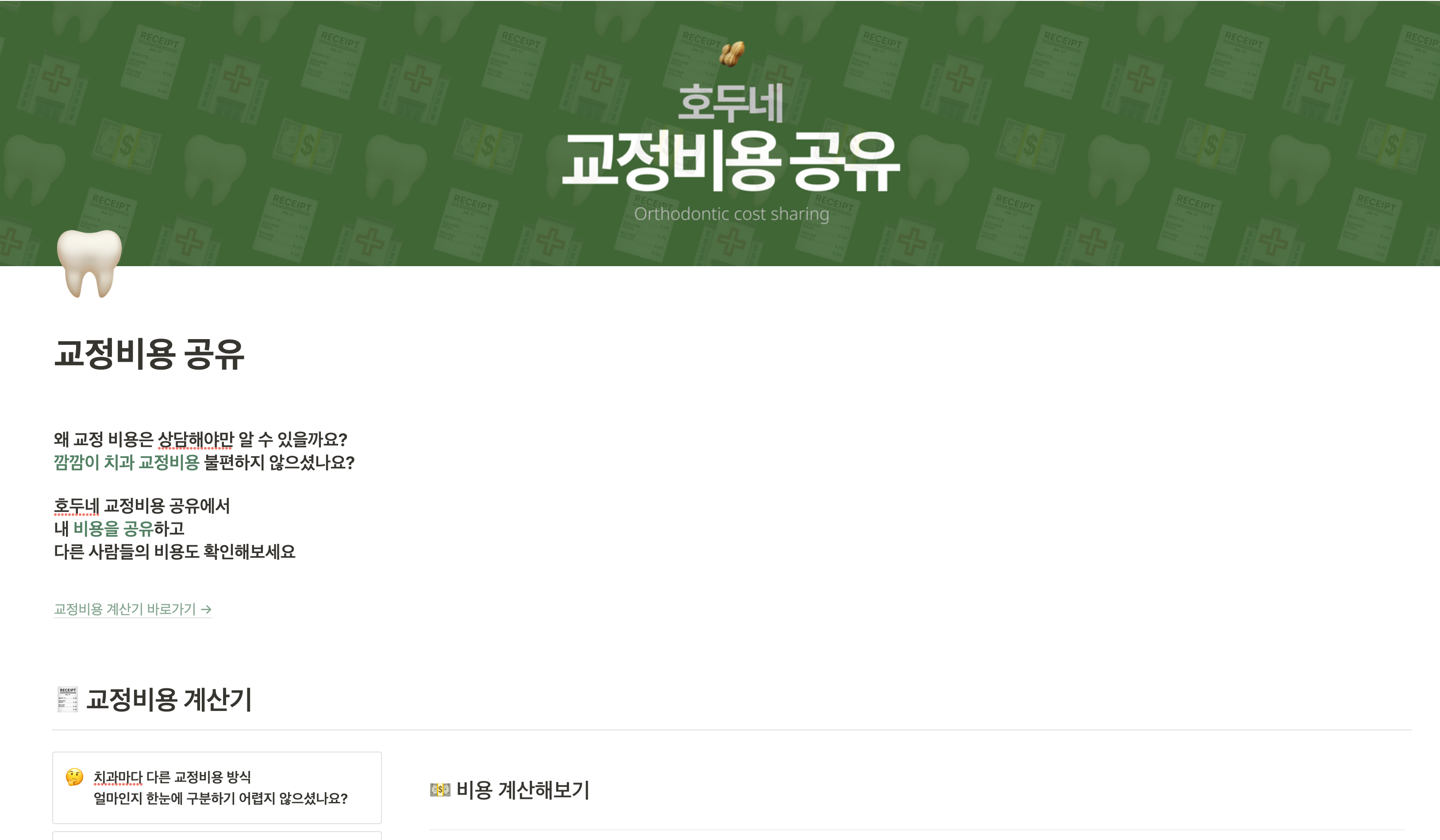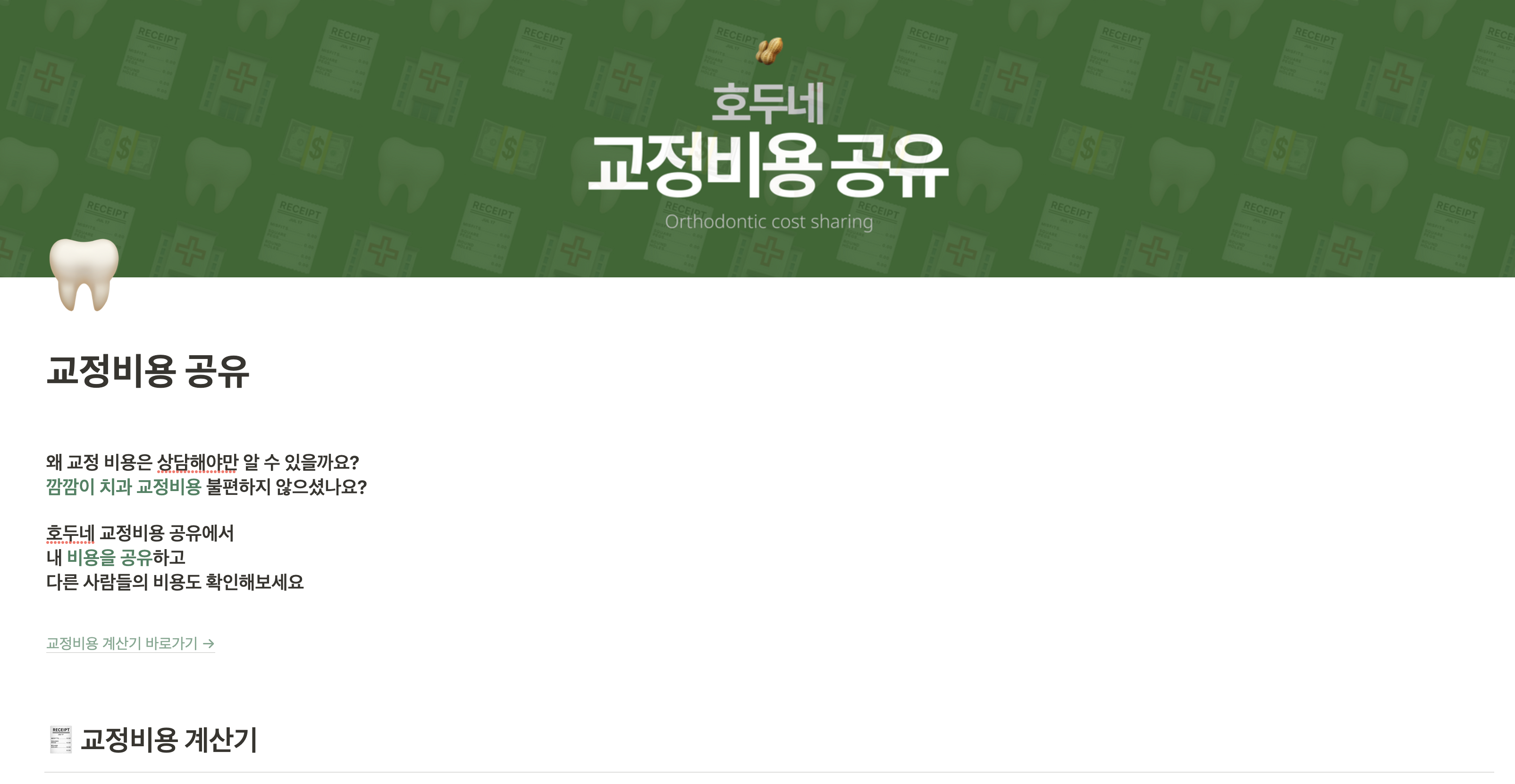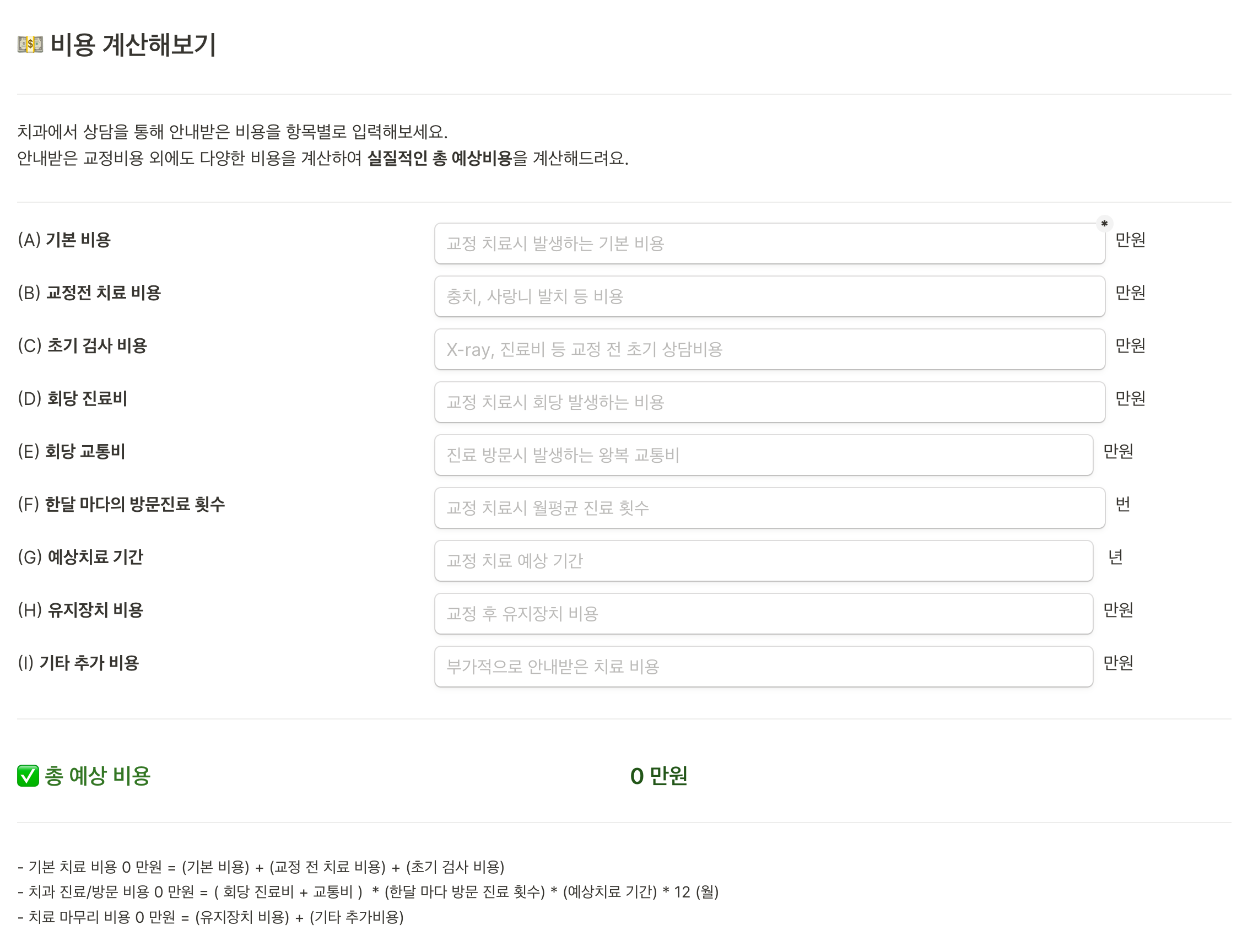 - 병원별 교정비용 계산로직을 어딘가에서 수집해서 공개한다.