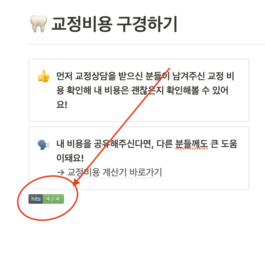 - 이 페이지가 얼마나 활성화 되었는지 고객에게 보여주고, 간단하게 오늘 몇명의 고객이 방문하였는지 확인하는 목적으로 힛츠를 활용하였습니다.