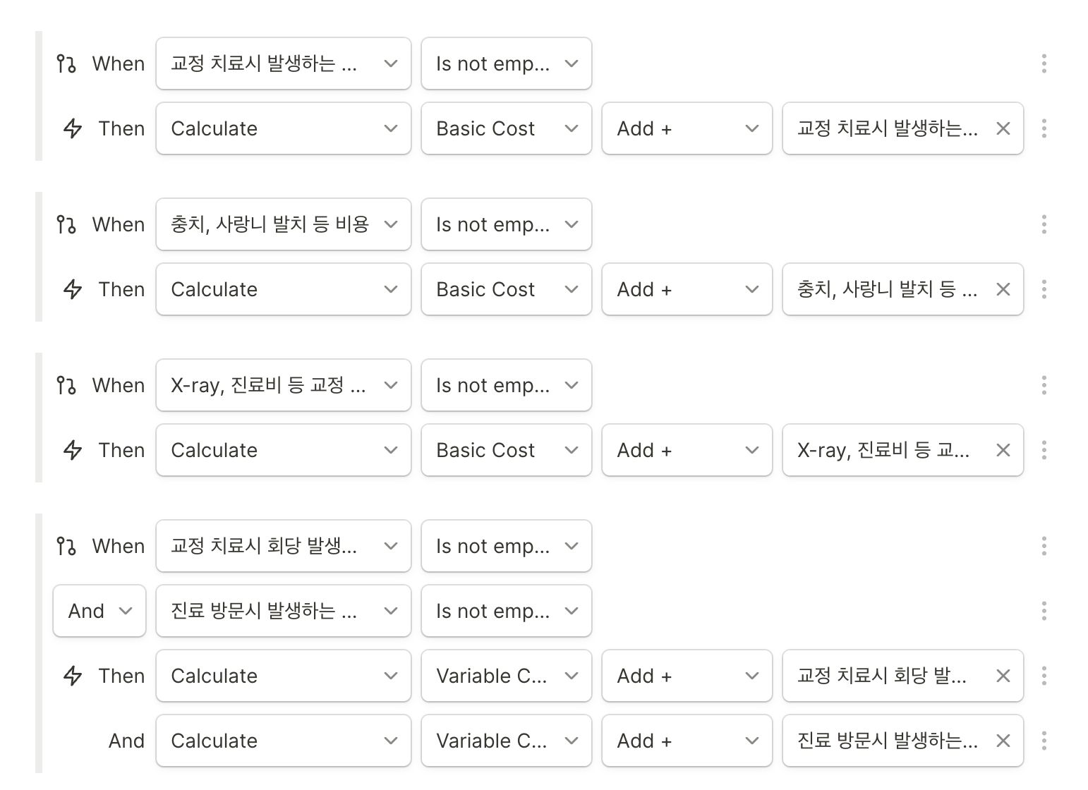 - Basic Cost = (기본 비용) + (교정 전 치료 비용) + (초기 검사 비용)