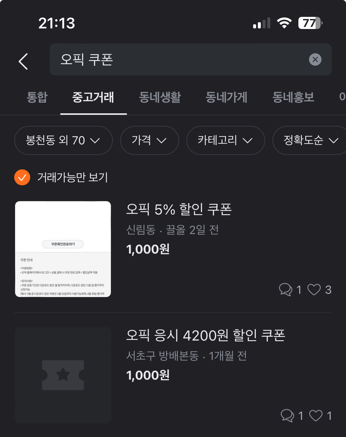 또 하나는 통신사 할인이나 여러 가지 멤버십을 통해서 오픽 멤버십 쿠폰을 가진 분들이 당근 마켓이나 중고나라 번개장터의 판매 하는 것들을 구매해서 적용하는 방식입니다
