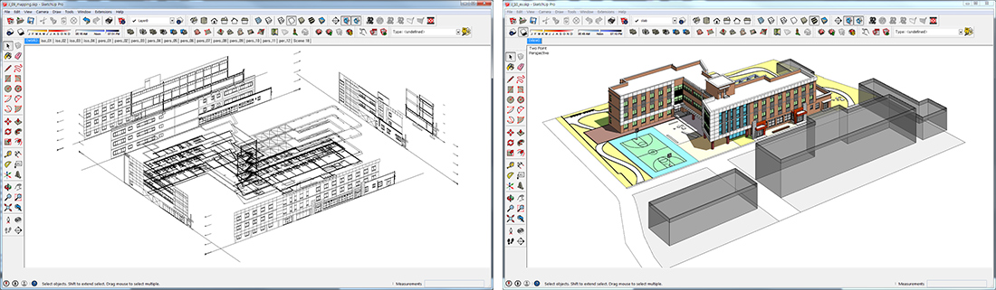 스케이치 업은 건축물이 실제로 어떤 형태를 갖는지 3D 모델링을 할 수 있는 프로그램입니다. 대부분의 건축학과에서 보편적으로 사용하는 프로그램이고 실무에서 가장 많이 사용하는 프로그램으로 알고 있습니다. 필수적으로 기본적인 사용법은 익혀가시는 것을 권장드립니다.