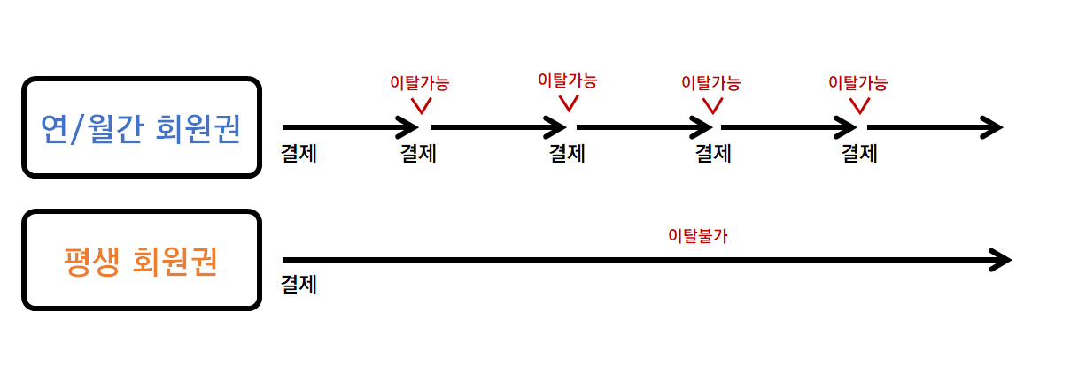 평생 결제와 연/월간 회원권의 차이