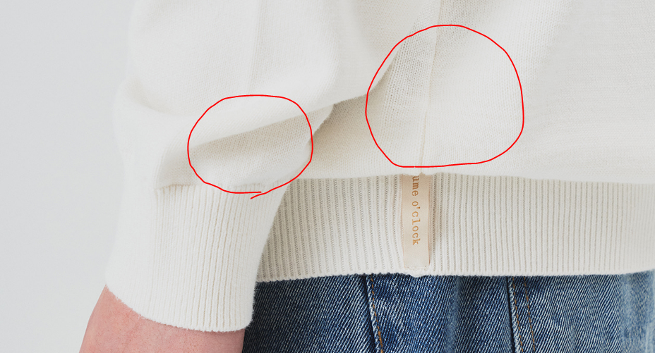 이때 조심스럽게 봐야 하는 것이 두께입니다. 해당 가격대로 만들 수 있는 면 니트의 경우, 당연히 얇아질 수밖에 없습니다. 사실상 니트라기보다 티셔츠에 가까운 두께로 낮은 보온성을 갖게 되는 경우가 많습니다. 또한 체형 보완을 잘 못해준다는 점도 생기게 됩니다.