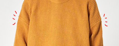 이런 완성도를 가장 쉽게 망쳐버리는 것이 바로 어깨 뾰족 니트입니다. 정면에서 니트를 보았을 때 유일하게 접합부가 보이는 부분이고, 오버사이즈 니트의 경우 어깨선 밑으로 접합부가 위치해 그 뾰족함이 더 강조되기도 합니다.