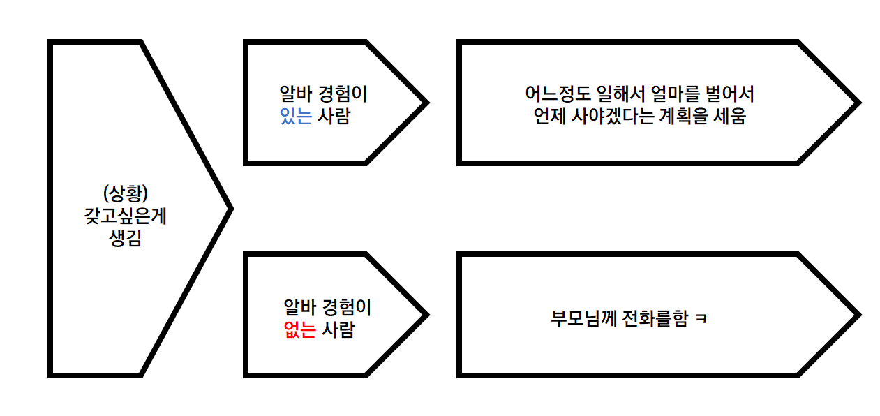 1번 경우와 달리, 대기업 중견기업 등 소위 말하는 취업을 준비할 때에도 알바 경험을 어필하는 경우가 많습니다. 완전히 해당 산업이나 직무와 아르바이트 경험이 fit 한 경우는 적지만, "알바를 통해 ~를 배웠다"라는 식으로 요소와 속성을 연계하기에 좋습니다.