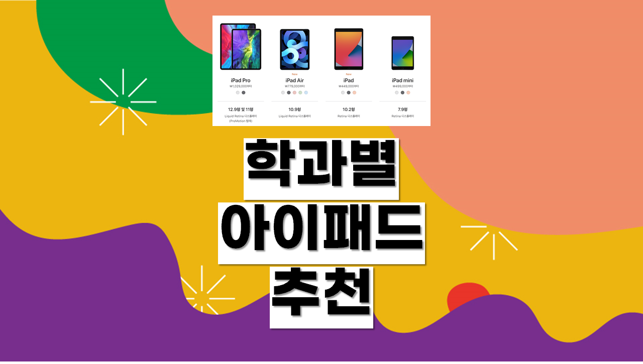 대학교 학과별로 특성에 따라 아이패드가 필요한지, 혹은 어떤 아이패드가 필요한지가 다릅니다. 오늘은 그 내용을 정리해보도록 하겠습니다.