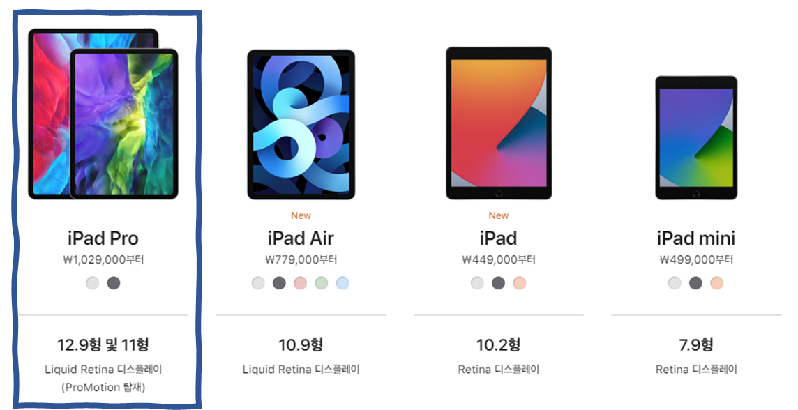 제품 : 아이패드 프로 라인업