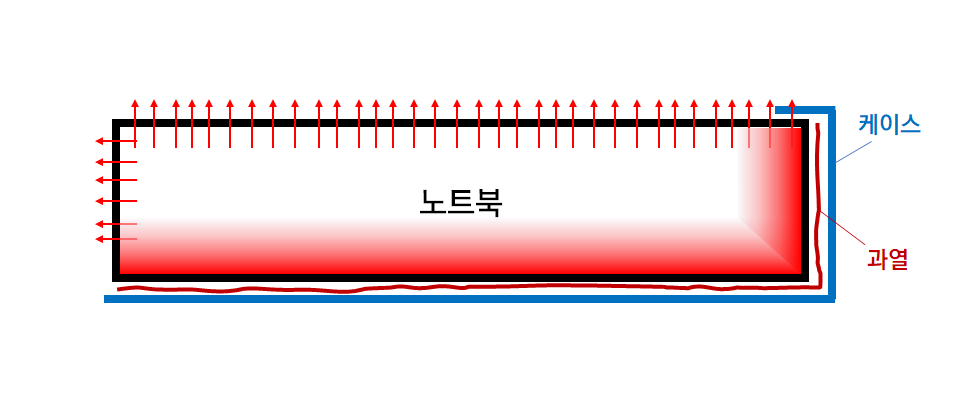 하지만 노트북 외부 케이스(PC 케이스)는 굳이 굳이 노트북을 한번 더 감싸줍니다. 당연히 노트북 표면에서 방출되어야 했을 열이 케이스에 갇혀 한 번 더 노트북을 달구게 되고, 노트북 성능을 낮추는 원인이 됩니다.