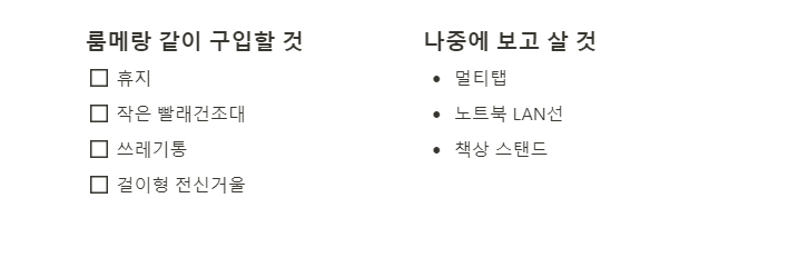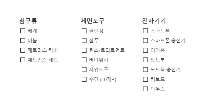 기숙사 준비물 리스트 노션 템플릿👌👌