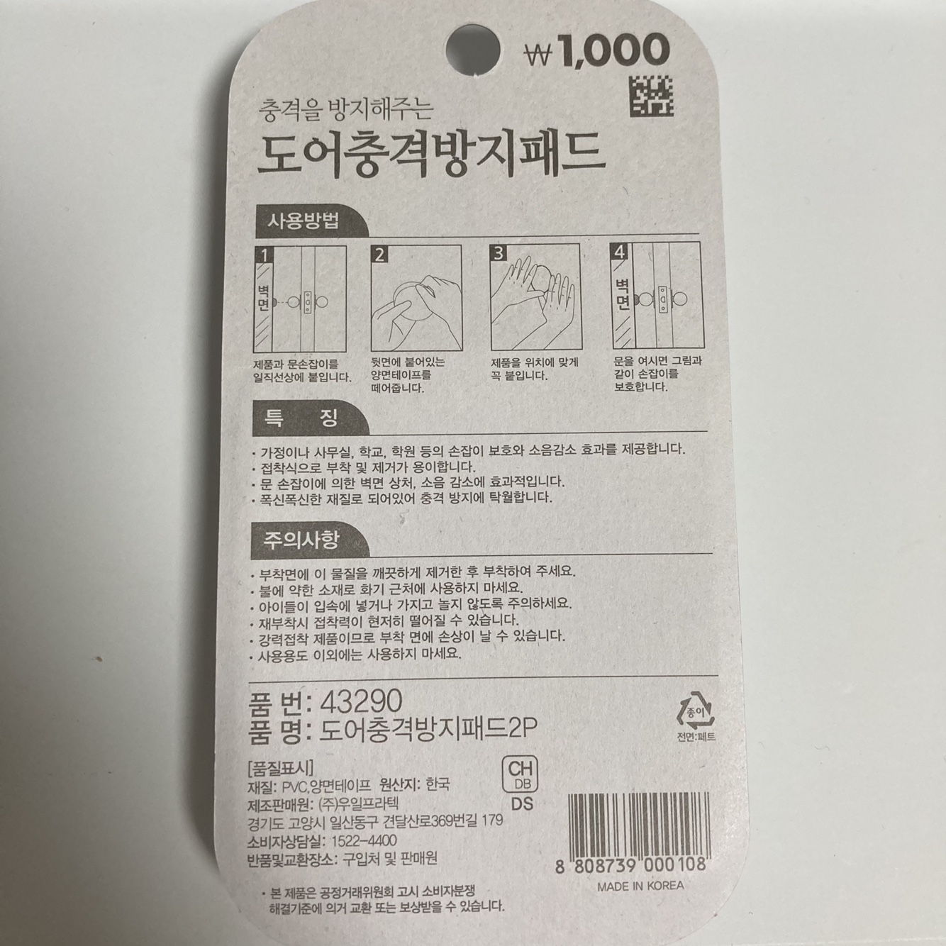 네 다이소 제품이 맞고, 1000원짜리가 맞고, 도어 충격 방지패드도 맞습니다. 우리가 칫솔 이가 나가면 청소용으로 사용하듯, 꼭 도어 충격 방지패드를 만들어진 대로만 사용할 필요는 없겠죠.