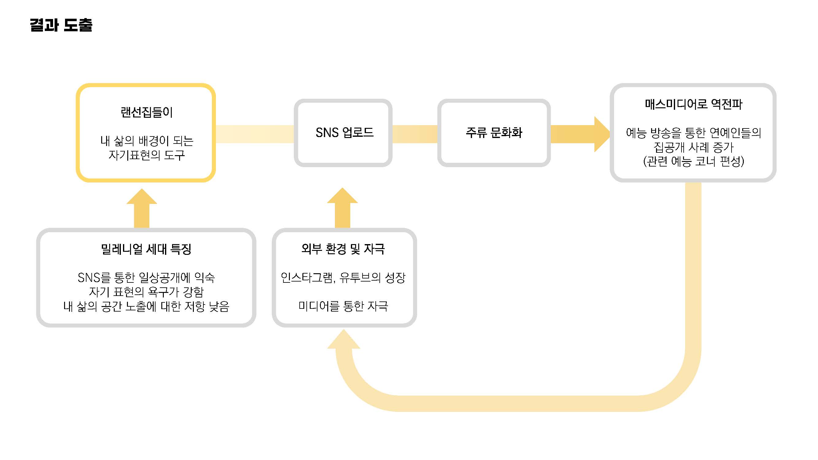결과적으로 다시 외부 환경 및 자극으로 이어져 positive feedback을 형성해 지속적인 문화로 자리 잡은 것을 알 수 있었습니다.
