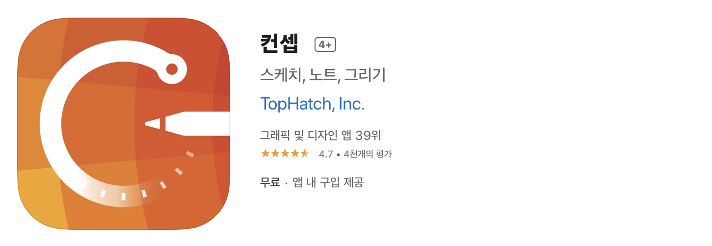 차례대로 Concept, GoodNote5, 프로 크리에이트 procreate입니다.