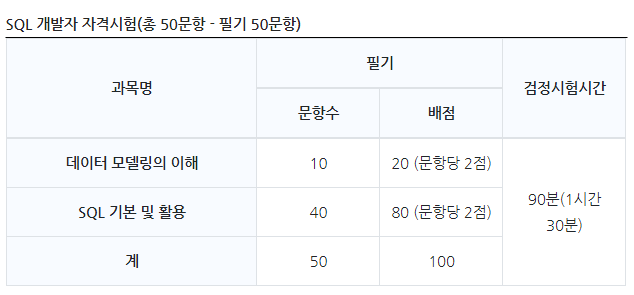 국가공인 SQL 개발자 자격으로 SQL에 대한 기본적인 역량을 평가하는 시험이다.